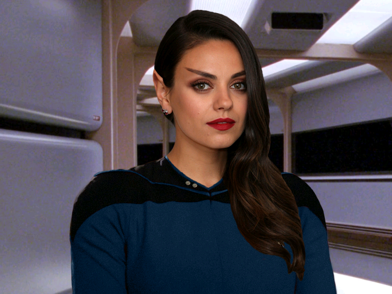 | Physical Description | titled eyebrows and long hair down her chest. Small pointed ears also wear bright red lipstick Duty Uniform On duty, she wears her standard blue uniform with the rank of 2 full pips (Lieuteant). While always wearing a light pink lab coat. Off Duty Uniform Of duty, she likes to relax in comfort wearing a plain t-shirt and a pair of ripped denim shorts. |